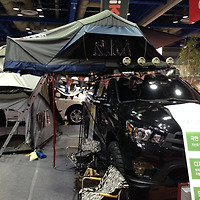 사각타프 한쪽에 연결할 수 도 있고, 차량 한쪽에 어닝을 설치하는 경우도 있다.